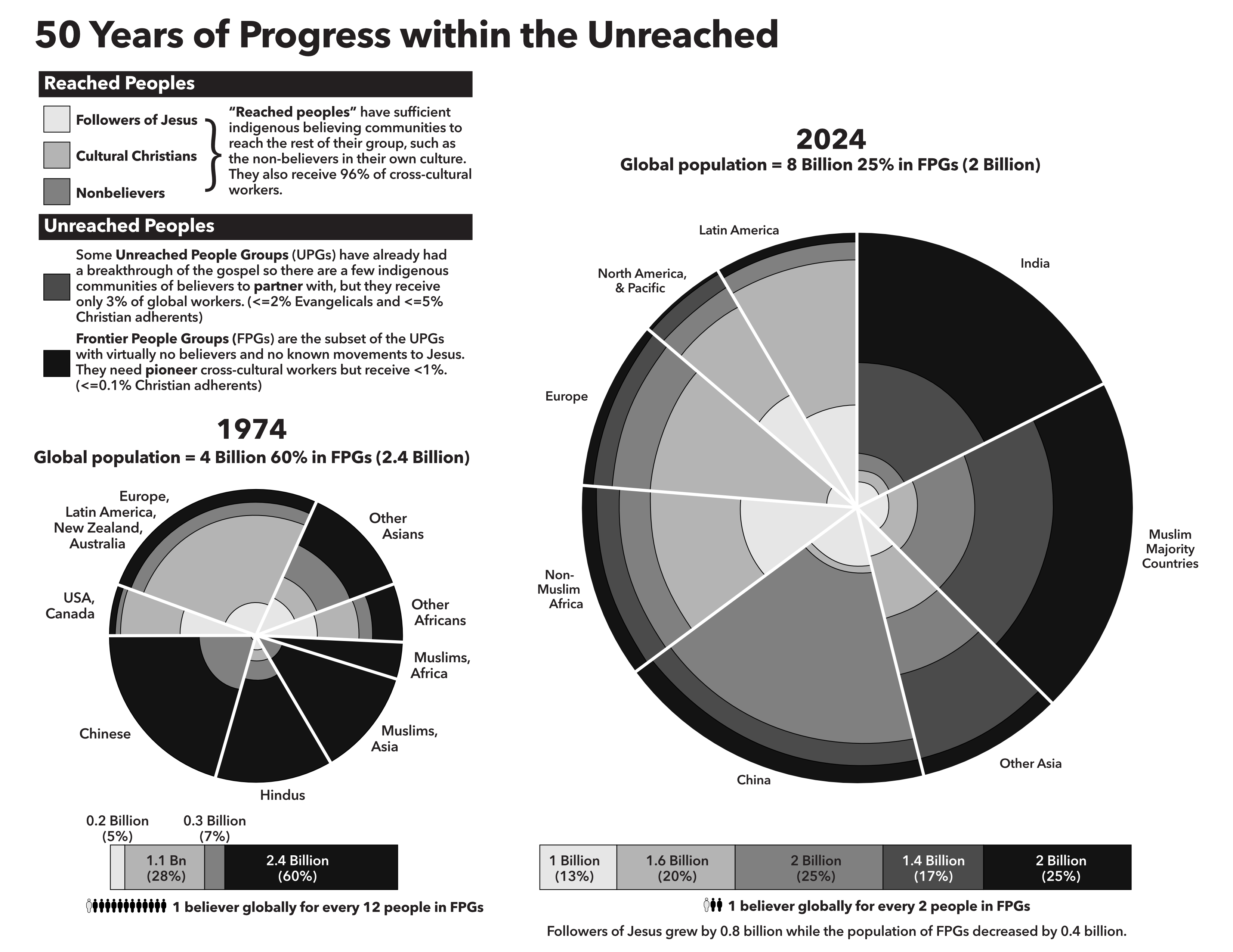 The fruitfulness of the mission enterprise is a glorious reality over the past 50 years. The view of world evangelization has been getting clearer as the global Church has also grown and there are more researchers carefully watching progress in kingdom growth across the globe. Where 50 years ago we estimated a total number of unreached people groups to be 16,750, today the estimated number of unreached people groups is around 7,250, with the greatest need represented by peoples in the Indian subcontinent. The way we see the unfinished task has gotten clearer, bringing adjustments to the view of all people groups globally, but this is no shell game of statistics. There has been unprecedented progress in world evangelization within the past 50 years. My favorite data crunchers are my friends at Joshua Project who manage joshuaproject.net, where you can see resources such as the “Status of World Evangelization 2024.” Only by God’s empowerment can this progress be explained.