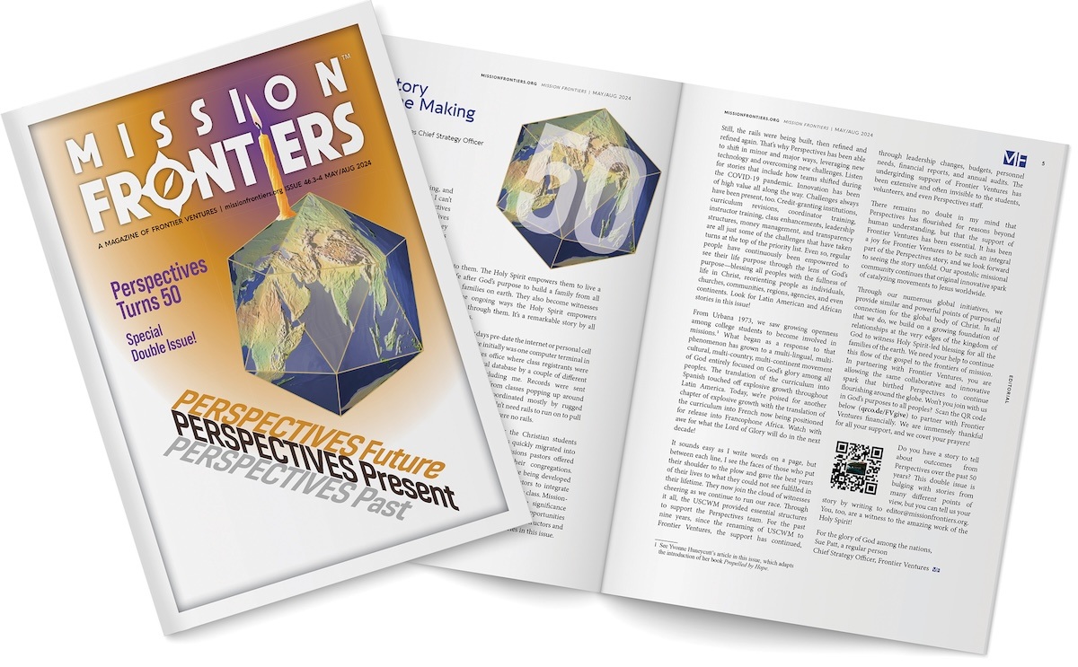 The ideas contained in the Perspectives curriculum have been powerful change agents across the mission enterprise. Look at the May-August 2024 Mission Frontiers issue celebrating that program’s 50th anniversary to gain a better picture of its impact.
