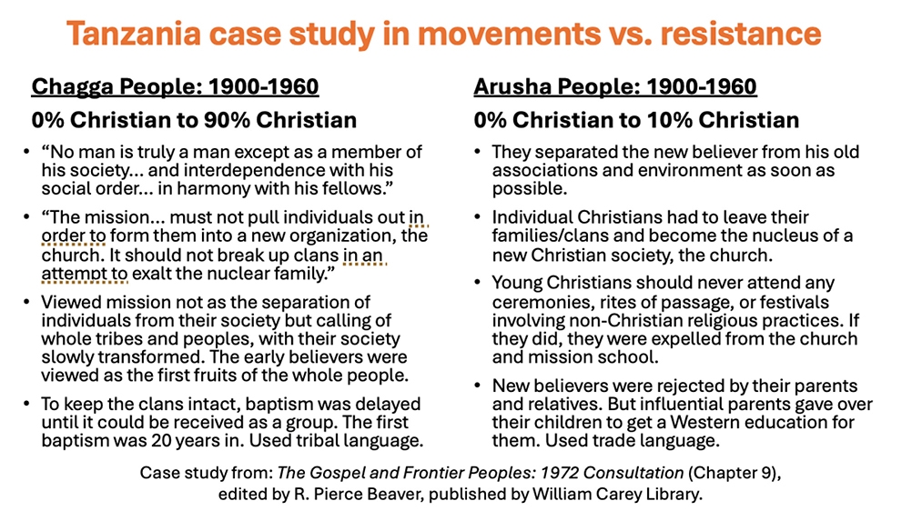 The gospel is a message that enters and transforms existing people groups, even those associated with pagan practices and other religions. Ralph Winter pointed out “the churches are already there, they just don’t know Jesus yet” meaning the familial and societal structures remain intact as the good news takes root within them. We have seen this work countless times in tribes all over the world, including our own ancestors, who can tell you when the gospel came to our own people. It also is the way to implant the gospel into people groups with strong religious identities.